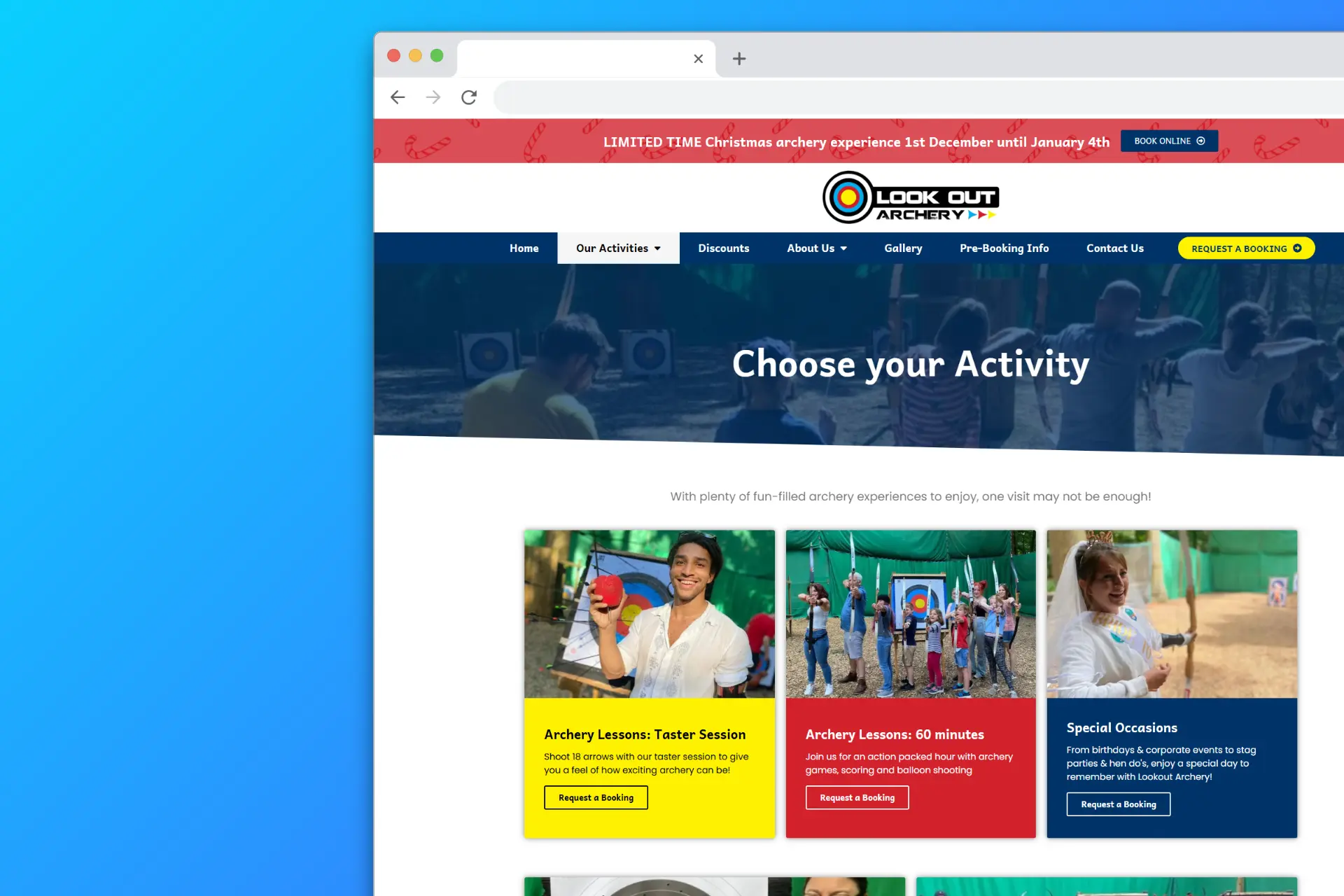 A fresh, high-impact website created for Lookout Archery to boost bookings and showcase their archery experiences.